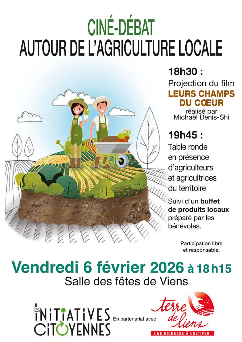 L’association Les Initiatives Citoyennes en association avec Terres de liens ont le plaisir de vous inviter à un ciné-débat avec la projection du film "Leurs champs du cœur", l’agriculture au centre des enjeux majeurs de notre époque.