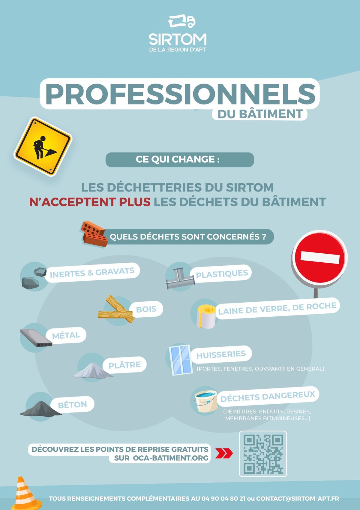 Les déchetteries du SIRTOM n’acceptent plus les déchets du bâtiment.