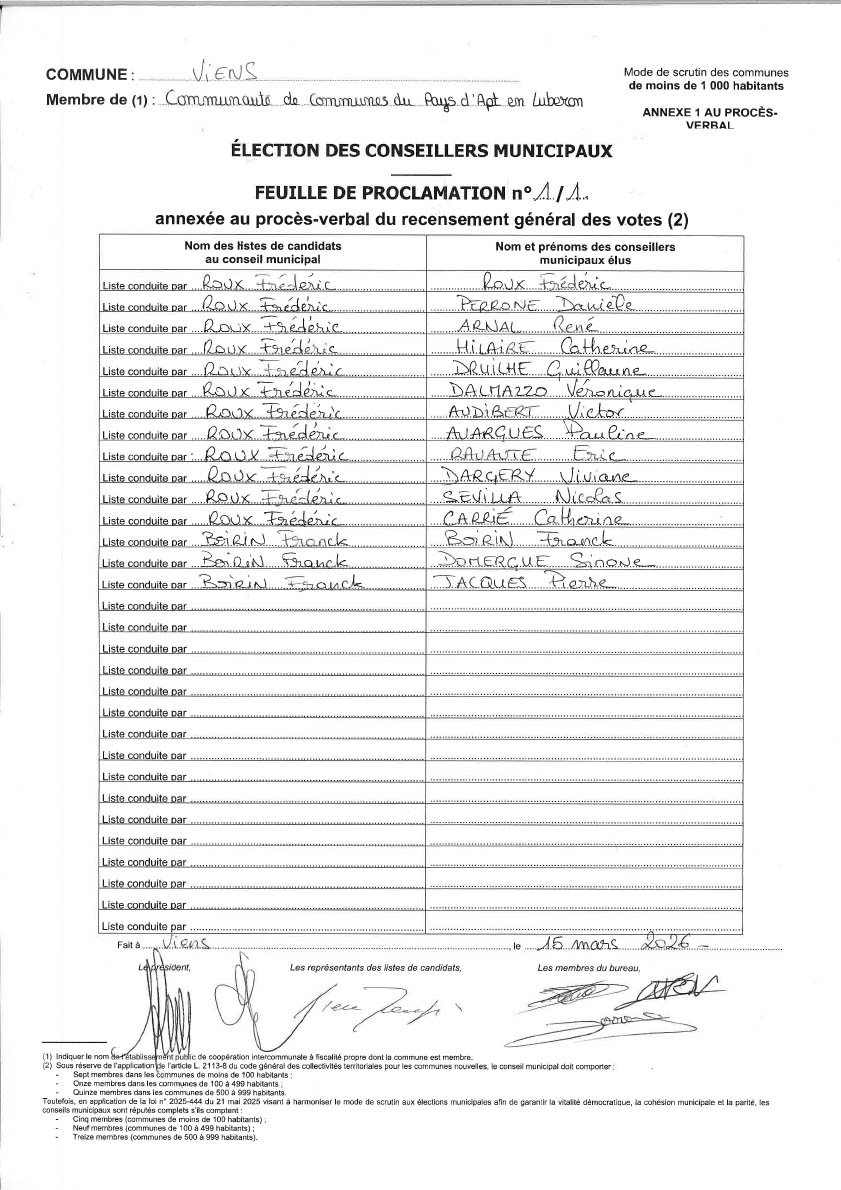 Voici les résultats de l’élection des conseillers municpaux.