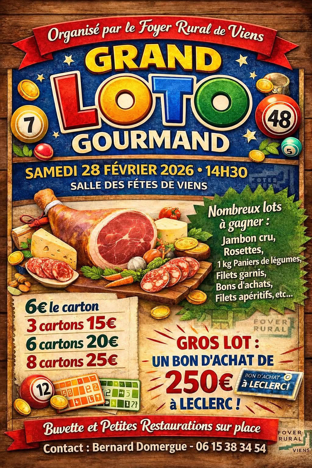 - Gros lot : Bon d’achat Leclerc de 250 €.